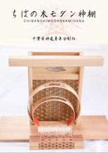 現代の生活様式に合う千葉県の木で千葉県の職人の作ったモダンな神棚を、このような想いから千葉県の青年神職がデザインを考え、千葉県森林組合から木材を提供してもらい、松戸にある株式会社山二建具が制作し、ちばの木モダン神棚が誕生しました。